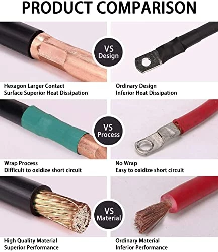 - Heavy Duty 4 Gauge Battery Cables: Tinned copper wire has good electrical conductivity, thermal conductivity, stability. 100% fine stranded pure copper cable.