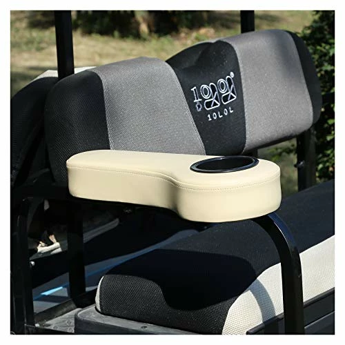 - Universal rear seat arm rest cushion with cup holder for most golf cart Club Car, EZGO, Yamaha, Cushman etc. Fit all sizes and different brands of rear flip seat (with 1″ wide square tube)