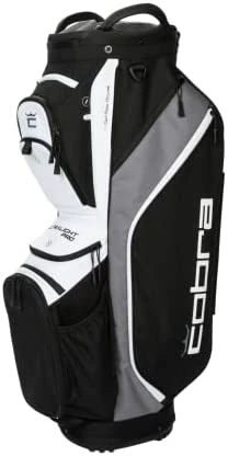 This bag is a great replacement for my old one. It is well made, lightweight, looks nice, and has plenty of pocket space. The cooler pocket allows two big size Gatorades to easily fit and keeps them cool. My only complaint is, as seen in the picture, the two top side pockets are covered by the cart strap making them somewhat hard to use while on the cart. That said, it doesnβt take away from everything else and am very pleased thus far with the bag.