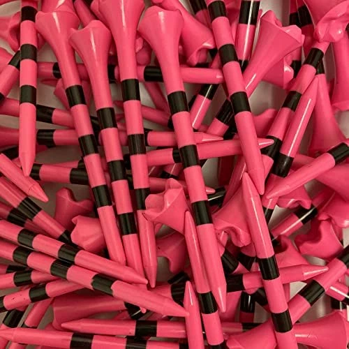 The CHAMP 100 Pride Professional Tee System Evolution 3 1/4″ Hot Pink and Black Golf Tees are sure worth the money because as long as you don’t lose them, you’ll have them forever, well until the black stripes wear off (after 200 hits?) then you’ll probably want to get a new one out to use. And since they’re bright pink that makes them easy to find in the green grass. I’ve actually given one to a heavy hitter on the first hole challenging them to break it and they gave it back intact after the last hole.