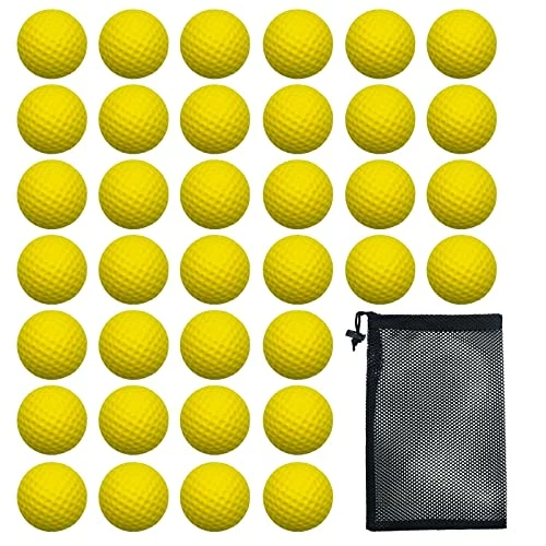 - Package Including :36 * Soft Elastic Indoor Practice PU Golf Balls Training Golf Balls(Yellow) and 1*mesh bag.