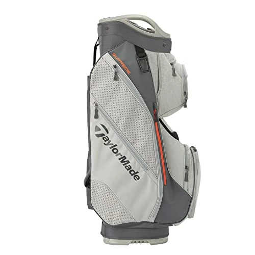All around great cart bag. I looked at the Taylormade cart bag that was on sale for $179 but it didnβt have the full length dividers or some of the other features. The Supreme bag is definitely worth the extra money. Lots of pockets and storage. Two hooks, one in each side. 2 Water proof pockets. Nice magnetic cooler thatβs pretty deep. Magnetic rangefinder pocket or personal item pocket. Built in hand strap at the bottom when lifting it in/out of the trunk. Rain cover included. No Velcro to attach the glove like many of the Taylormade bags but it does have an extra hook. I put a little Velcro strip on one of the hooks so that was easy. Oversized putter well works good. Each club slot has its own separate and full length divider which makes a big difference. Front ball pouch has two zippers and easy to open. It also zips off and is removable for if you wanted to embroider it or something. Makes it easier to clean out at least. Has a pen holder, and pockets for tees, clothes, or whatever else you would need. Also has a full umbrella sleeve instead of the cheaper drawstrings. Has the pass through for the cart strap which is a must on any newer cart bag. I have to say Iβm very impressed with the overall quality and itβs been a great bag.
