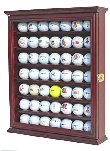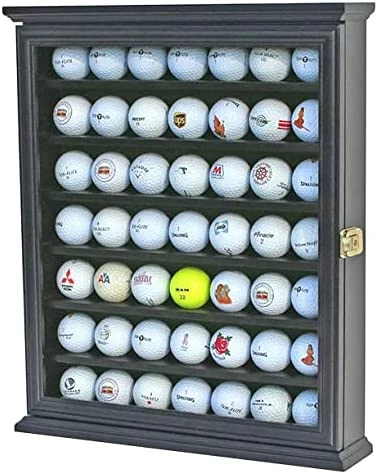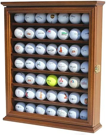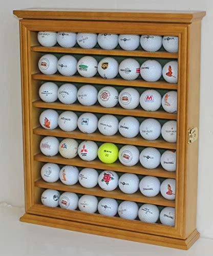 Hot Sale β DisplayGifts 49 Golf Ball Display Case Cabinet Wall Rack Holder Solid Wood Frame With 98% UV Protection Lockable Glass Door, Wall Mounted Or Stand A Counter Top Great Golfer’s Gift Oak Finish π