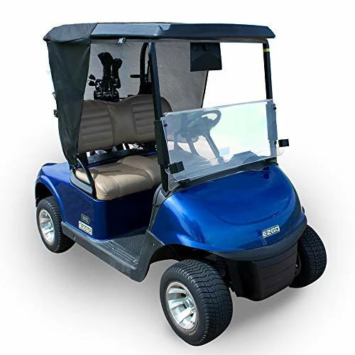The sun shade provides a level of protection from the sun for cart owners who prefer not to have a full cart cover on in the summer. It’s lightweight and easy to install. I can’t comment on durability because I’ve not had it a full month, but it’s very popular around the private course I play and somewhat hard to get. I waited better than two months for them to be in stock. Apparently they’re one-size-fits-all for 2 person carts, but it for sure fits my 2013 EZGo RXV.