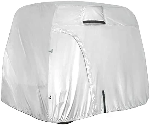 - Durable superior 600D polyester with waterproof coating construction, high-level double stitching, waterproof seam sealing tape, protects your golf cart against rain, UV, sand, snow, dust, fog, scratch and other harsh weather situations.