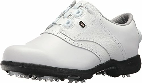 Footjoys are a wonderful golf shoe and fit my feet well, size 11. I have had many pair over the years, one pair for over 20 years. Wide toe box, fully waterproof, stylish and very comfy with the insole that came with the shoe (although they are removable if you have your own insole/orthotics). The white cleans up nicely and they donβt scuff easily. I prefer shoes with cleats and this has an additional one right at the end of the toe for a stable swing finish! I was a bit leary of the BOA, and I need a shoehorn to put them on, but they tighten up nicely and do not loosen while playing, even with walking 18 holes over our hilly course. Hopefully the plastic type laces will hold up for years. They were βlast years modelβ so I got them for a great price as well!βUPDATE: After 6 months these DryJoys began to leak. I wore them 2x a week or so, alternated with other shoes, cleaned them after each use. They were comfy and I like the BOA system. I had to return them to the seller for a full refund since they have a 2 year waterproof warranty.