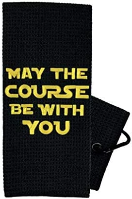 My husband has recently gotten back into golf and he’s a huge star wars fan. I chose this towel over “competitors” because it was embroidered, and I’m glad I chose this one. It’s very nice quality, the embroidered yellow “may the course be with you” is well done, and the towel is longer than I expected. I gave it to my husband as a gift and he promptly clipped it onto his golf bag (with the provided clip thing) and left to go to the driving range.