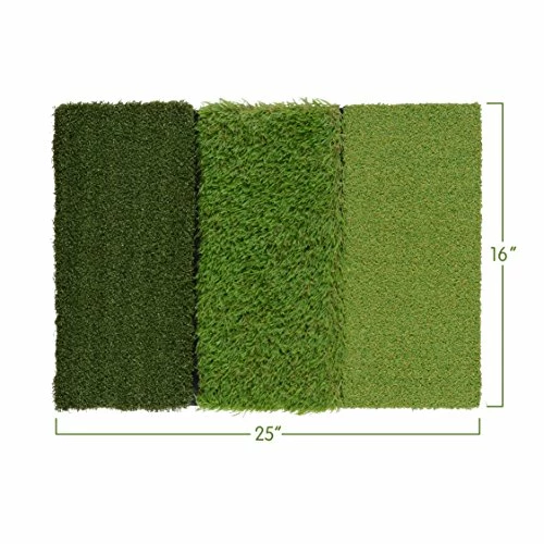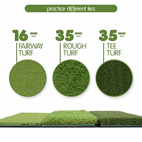 - 3 different turfs to practice strokes on smooth, rough and putting greens to perfect a perfect drive, chip, or putt. Great for Indoor, outdoor and backyard use.