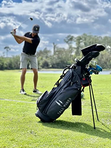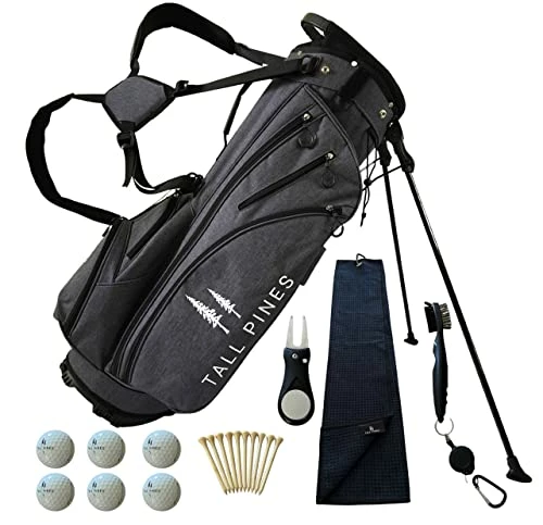 - BUNDLED WITH WITH USEFUL GOLF ACCESSORIES FOR MEN & WOMEN: Tall Pines Golf offers not only a durable bag, but even equally useful accessories to put in it. Its included accessories kit contains six durable 3-piece Urethane Cover Golf Balls to maximize distance off the tee and provide ultimate control around the greens. You also get 10 bamboo golf tees, magnetic golf ball marker, and a large fast-drying, highly absorbent microfiber towel.