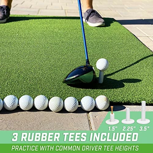 - 3 RUBBER TEES: 1.5″ tee allows use of a wood tee at any height, and 2.25″ and 3.5″ tees provide options for common driver tee heights.