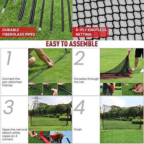 - Premium Material and Sturdy Frame: 5-Ply knotless net, robust steel frame, durable fiberglass poles and double stitched seam. This golf training net is designed for thousands of swings. It withstands up to 120MPH ball speed. Swing with confidence