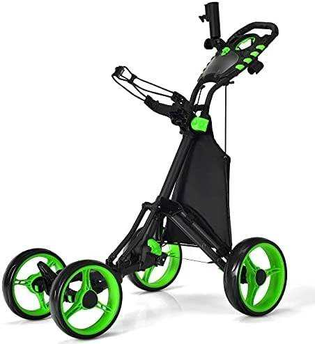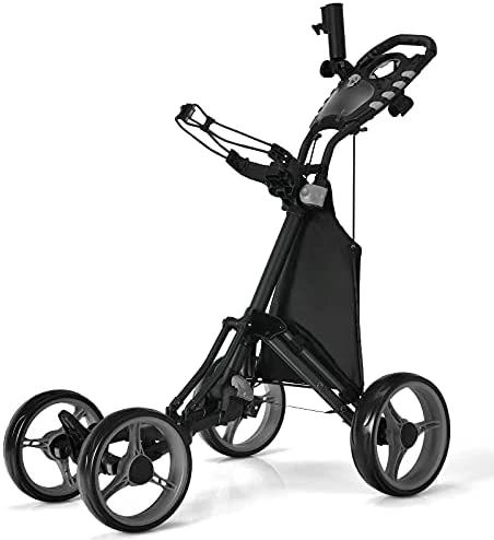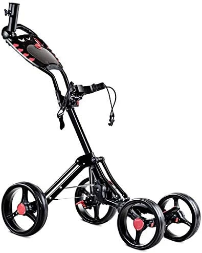 - Functional Golf Cart: Large Ο10.5β rear and Ο9.5β front maintenance-free EVA wheels provide perfect balance and traction on all types of Terrain. It sits on 4 durable PP wheels that covered with wear-resistant EVA foam, thus it can run smoothly even on the uneven ground.