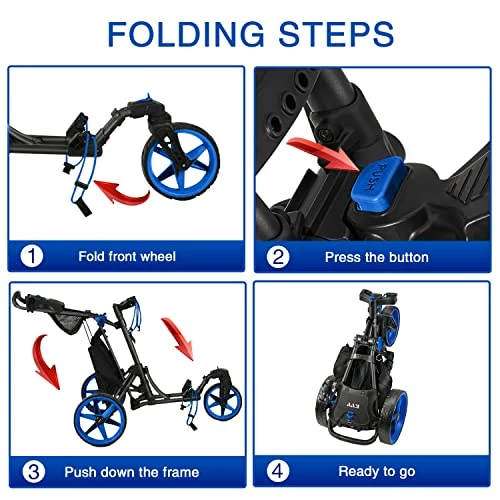 - FOLD AND OPEN IN ONE SECOND: You can open the cart and fold it to compact size with ONE button mechanism in a lightning fast ONE second.