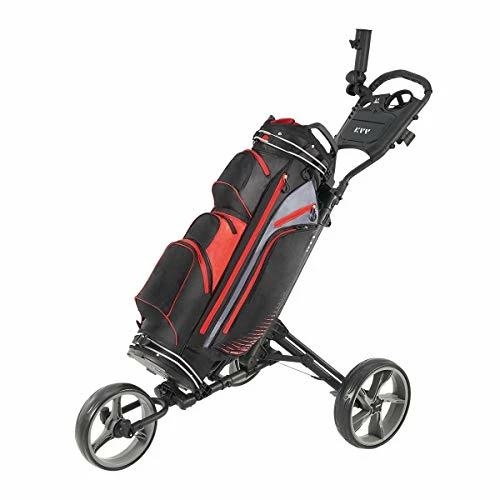 I like golf, it doesnβt like me. I really will spending many more days walking like I have over the last 25 years. I simply donβt like carrying my clubs anymore. I searched online for a 3 wheel carrier that looks good and is functional and I believe I have found it, even has easy set up in minutes. I attached my Sun Mountain bag and baβam!…. looks great.Very happy with my purchase.