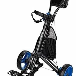 This is a really good push cart. Easy to fold/unfold. The golf bag sits us nice and high, so you towel doesn’t drag on the ground. And the elastic straps to hold the bag are so much easier than the older style buckle straps. Nice big wheels. Seems to push itself!