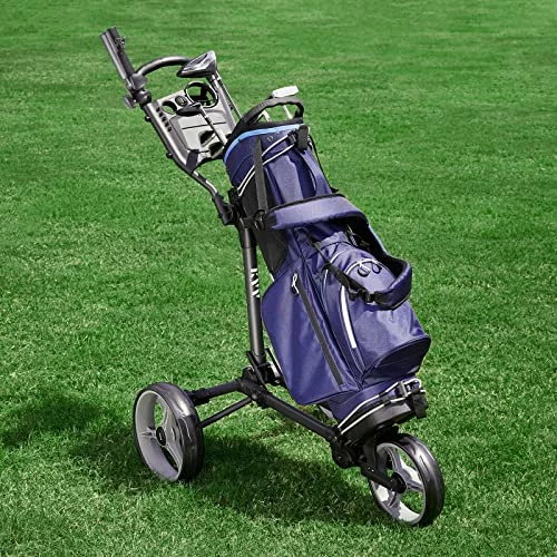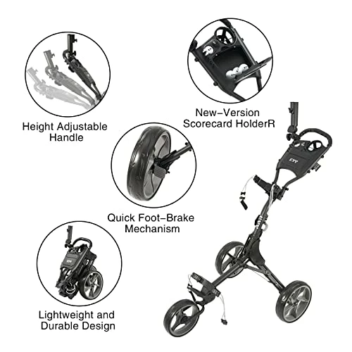 8 reviews for Flash Sale 𧨠KVV 3 Wheel Golf Push Cart Ultra Lightweight Smallest Folding Size, New-Version Scorecard Holder Charcoal π