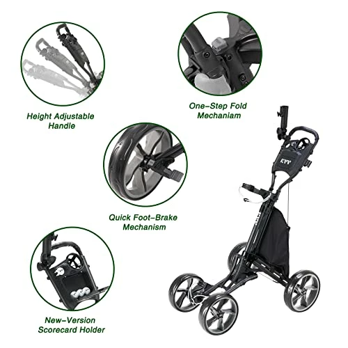 8 reviews for Hot Sale π€© KVV 4 Wheel Foldable Golf Push Cart-with Super Strong & Lightweight Aluminum Frame-One Step To Open And Close Cart Seat Attachable Black/charcoal π§¨