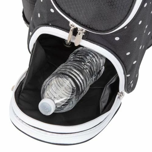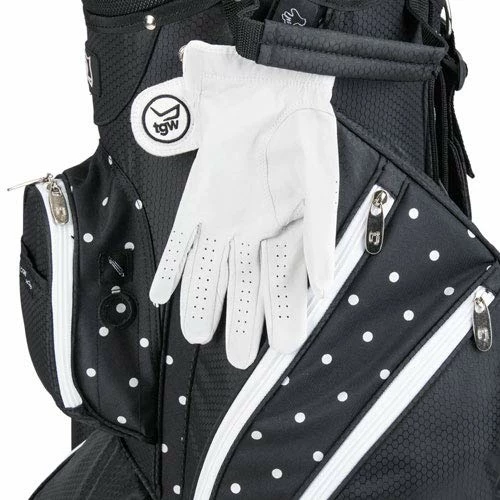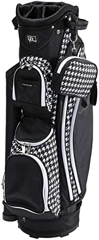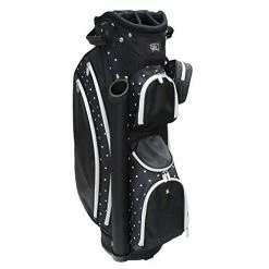 The person who designed this golf bag, plays golf! “Fabric”, whatever it is, can be wiped clean. Pockets galore. The cooler pocket kept my lunch and birdie juice cold (with only one chill pack). Fits well on my walking cart. Lightweight and SO pretty. Love the side mount holder for my putter. Great value compared to other golf bags. Have not reviewed for durability because we’ll see.