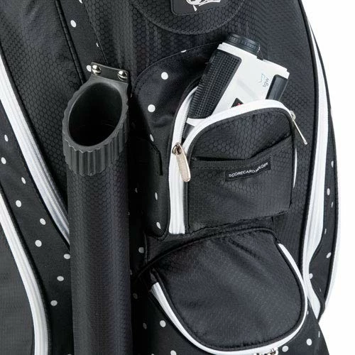 Love the quality, color, pockets and full length of club slots. I wish there were matching head covers.Had lots of positive comments from my golf league. The tube on side of bag for the putter is very large and the putter moves around too much. It works great for the umbrella!