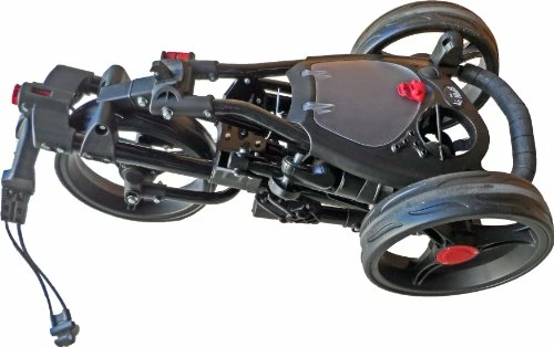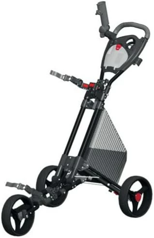 The GCPRO II push cart features the easiest/fastest folding mechanism on the market. Β A single push of a button easily folds the cart. This cart features a light weight aluminum frame, airless low maintenance tires, foot brake and adjustable handle. Β All carts come complete with scorecard holder, storage compartment, drink holder and umbrella holder.