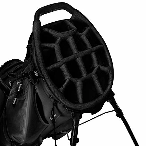 This was the perfect birthday gift for my husband. Club organization is a breeze, no more tangled grips. Holds six cans in a cooler pocket to bring your favorite drinks along without having to carry a separate cooler. Super light and the straps are air padded and adjustable for a comfortable carry when walking the course. Very sleek design with bag stand actuator hidden within the material. If you are using a cart there’s a sleeve to run the cart strap through so you still have access to all your gear. They really have thought of everything.