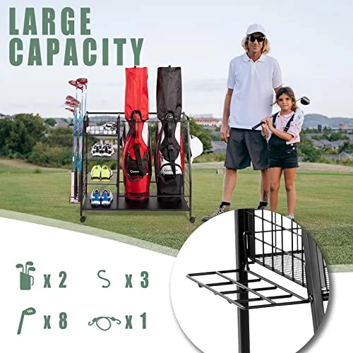 8 reviews for Flash Sale π Staransun Golf Storage Rack – Golf Bag Organizer – Garage Storage For Golf Equipment With Side Golf Clubs Holder – Extra Large Golf Bag Stand For 2 Golf Bags And Golf Accessories – Easy Assemble π