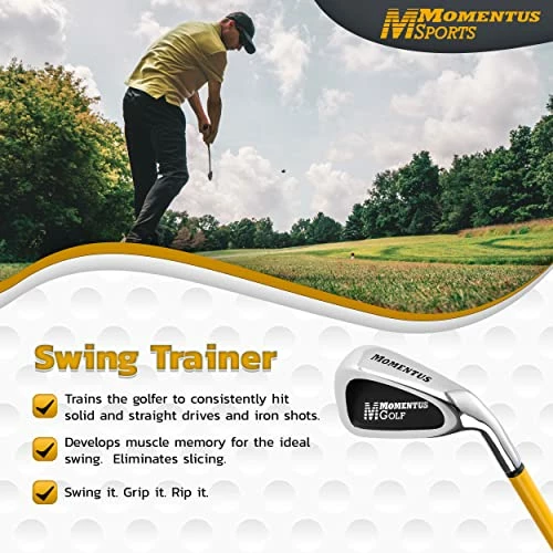 The Momentus golf swing trainer is a great product. The weight of the club is just right. You don’t need to swing for the fences. Just watch the included dvd. Stretching your muscles is very important. I would definitely recommend it.
